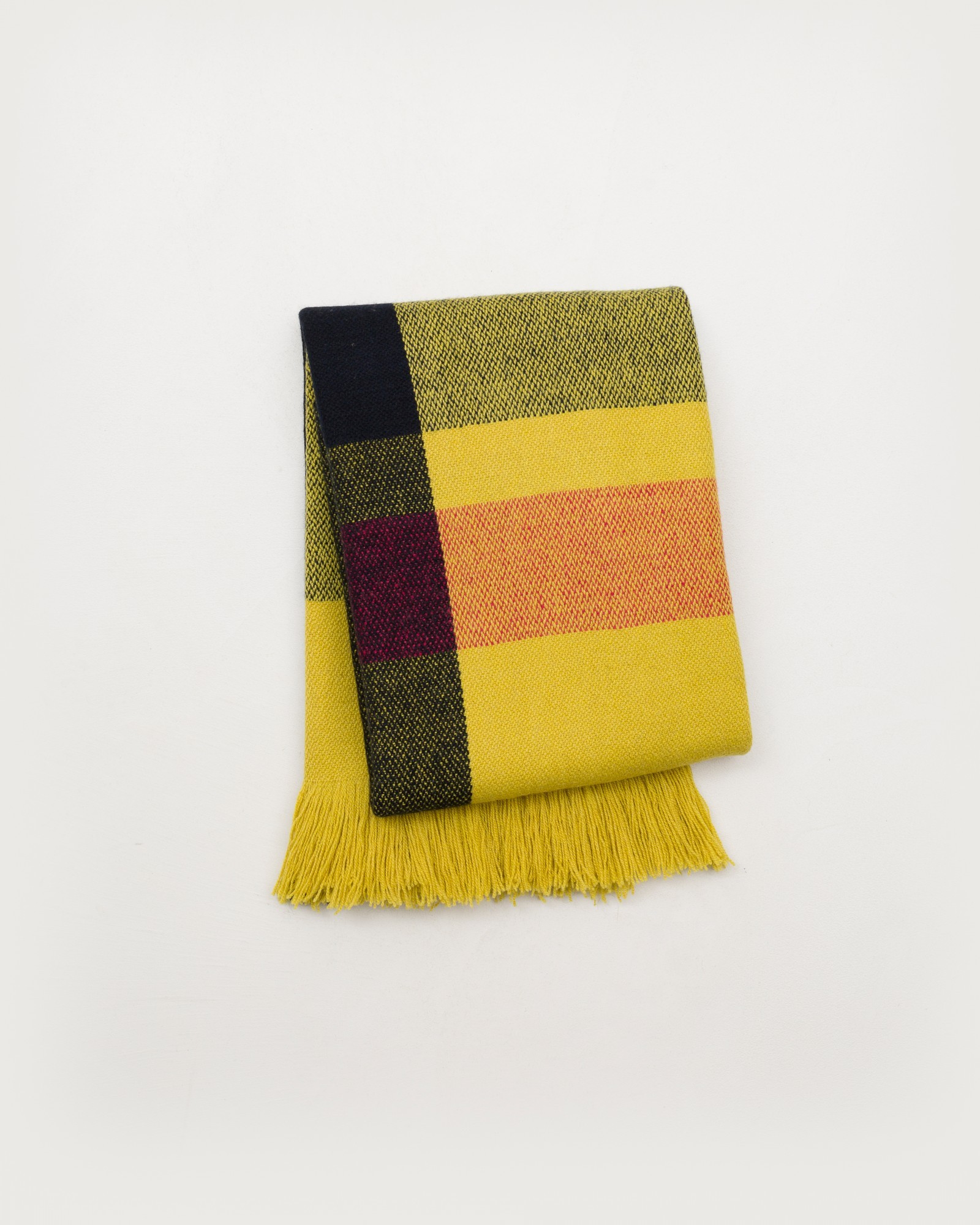 A meticulous hand treatment of the tread, from the beginning, seals the authenticity and uniqueness of each Otherways oversized scarf. A play of tiles and stripes gives each piece a strong and intense presence in the space that accentuates contrasting colors, deep, timeless and that emphasizes the contrasting Otherways band. Their size - 100x220cm - and the different weaving densities allow them to be used as a scarf, shawl or plaid.